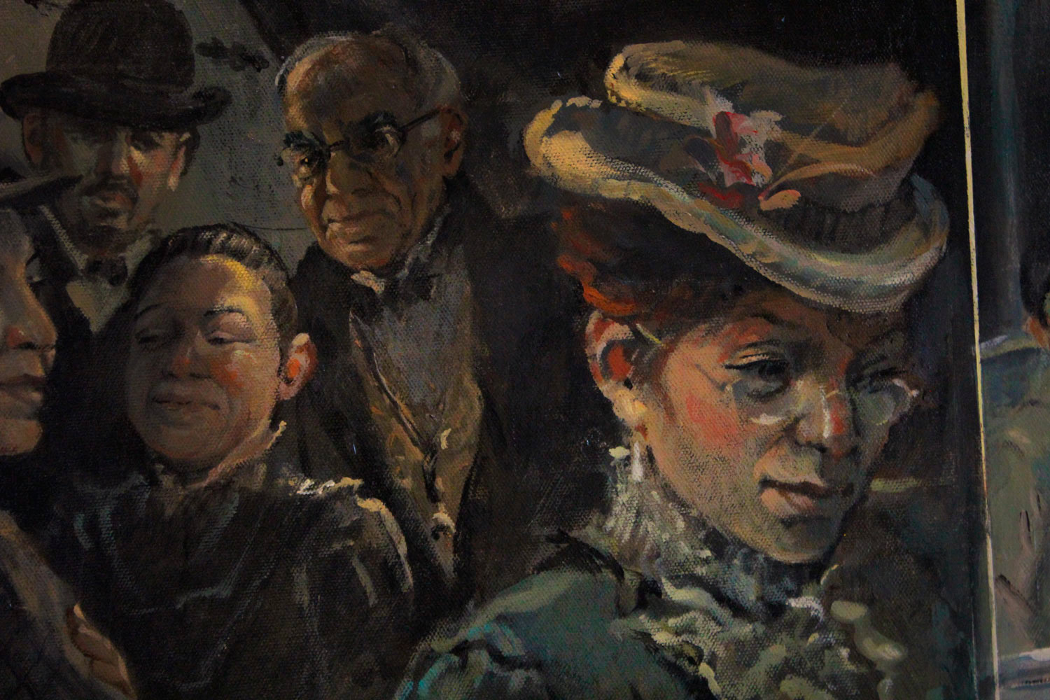 wharf crowd, detail, circa 1890, Kennebec Mural